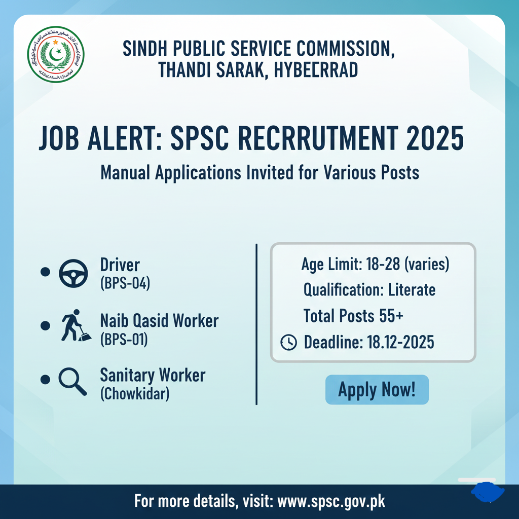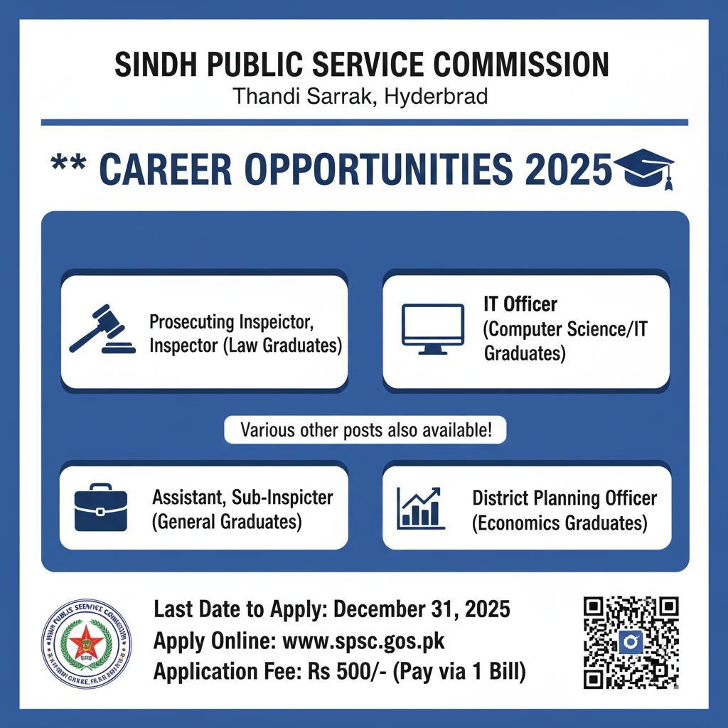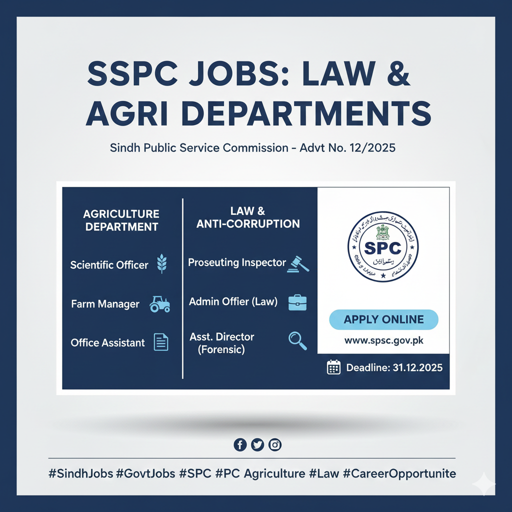 Jobs Exciting Career Opportunities in a Leading Public Sector Organization Islamabad 2025. December 23, 2025 Read More New Job Opportunities at Sindh Public Service Commission (SPSC) 2025 December 23, 2025 Read More New Job Opportunities at Khairpur Medical College (KMC) 2025 December 23, 2025 Read More Exciting New Career Opportunities in a Leading Public Sector Organization 2025 December 19, 2025 Read More New Job Opportunities in Social Welfare Department, Government of Sindh 2025 December 19, 2025 Read More Exciting Job Opportunities in Kuwait for Pakistani Citizens (2025) December 19, 2025 Read More New Apprenticeship Opportunities at Fatimafert Limited (via NTS) 2025 December 19, 2025 Read More New Job Opportunities: District and Sessions Court Karachi South 2025 December 17, 2025 Read More New Job Opportunities at District & Sessions Court Karachi Central (2025) December 17, 2025 Read More New Job Opportunities at Sindh Public Service Commission (SPSC) 2025 December 17, 2025 Read More Big Career Opportunity: ZTBL Announces 300 Officer Grade-III/MCO Seats! 🇵🇰 December 14, 2025 Read More Law & Agri Jobs Open: Sindh Public Service Commission 2025 December 13, 2025 Read More Digital Jobs Alert: Information & Broadcasting Ministry December 13, 2025 Read More Job Alert: Rights of the Child Commission Vacancies 2025 December 13, 2025 Read More Exciting Internship at Pakistan Railways Call Center 2025 December 10, 2025 Read More 1 2 Next »